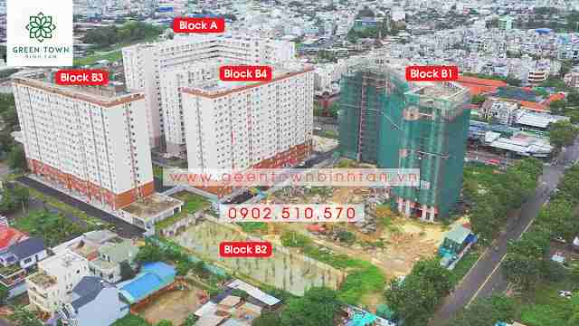 Green Town Bình Tân tổ hợp dự án căn hộ chung cư cao tầng tọa lạc tại Lô 5, Khu đô thị Vĩnh Lộc, phường Bình Hưng Hòa B, quận Tân Phú. Tọa lạc trong khu vực sầm uất, đắc địa nhất nhì của quận, thừa hưởng hệ thống cơ sở hạ tầng khang trang hiện đại, không gian sống lý tưởng cùng tiềm năng phát triển kinh tế mạnh mẽ. Quy mô Dự án Green Town xây dựng gồm 4 block cao tầng gồm B1 – 308 căn, B2 – 252 căn, B3 – 252 căn, B4 – 270 căn.